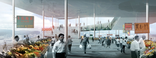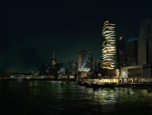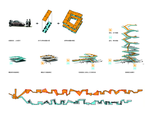 Through using parallel spiraling floor plates – parking under street - the parking lots have switched from a static, dark space to a dynamic, lifted ramp that unfold along the lively urban life, with elevated view of Victoria Bay.