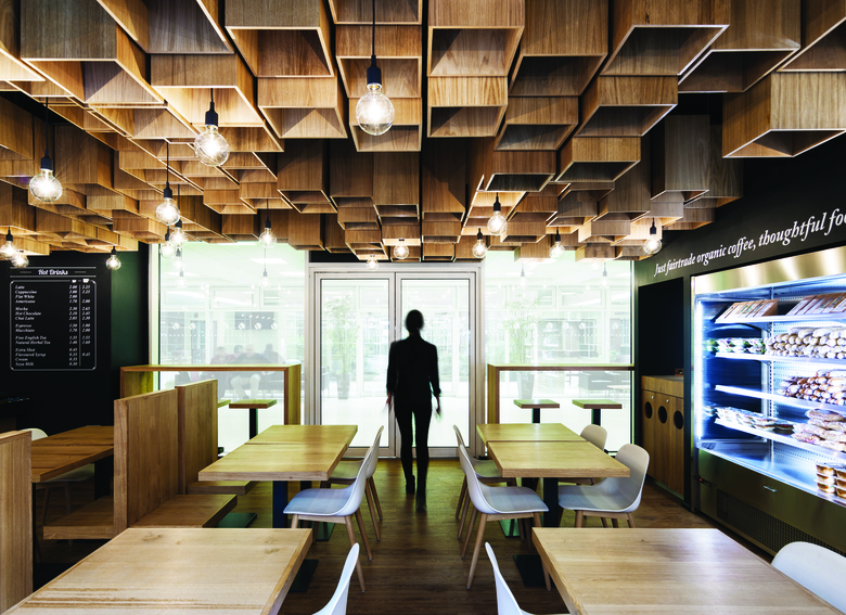 Il concept di Atkinson nasce dall'idea di creare uno spazio avvolgente e caldo per il cliente di Peabodys. Il legno è utilizzato su tutte le superfici; dal pavimento agli elementi di arredo come tavoli e bancone. Situato a Londra, nell'ala Atkinson Morley dell'ospedale St. George, il progetto pilota del franchising del gruppo Peabodys sviluppa con un approccio innovativo l'idea di caffee shop. Il legno è il protagonista del progetto; una serie di box dalla geometria naturale e sinuosa, distribuiti parametricamente, scende dal soffitto nascondendo al suo interno gli elementi tecnici del condizionamento e delle luci, garantendo inoltre un comfort acustico superiore. Il cliente si ritrova avvolto dal calore del legno, un feeling moderno e minimale ma al tempo stesso domestico e familiare. I medesimi materiali trovano spazio anche sul balcone principale e sui complementi di arredo; panche e tavoli sono disegnati da Modourbano per Peabodys e configurano l'open space in piccoli cluster dalla pivacy controllata.