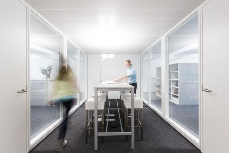 Büro-, Konferenz-, Schulungs- und Besprechungsräume sowie eine Mitarbeiterkantine verteilen.