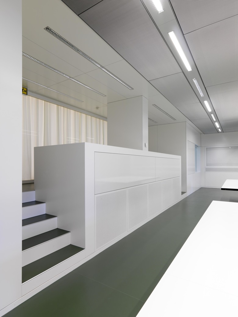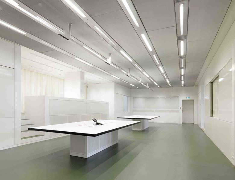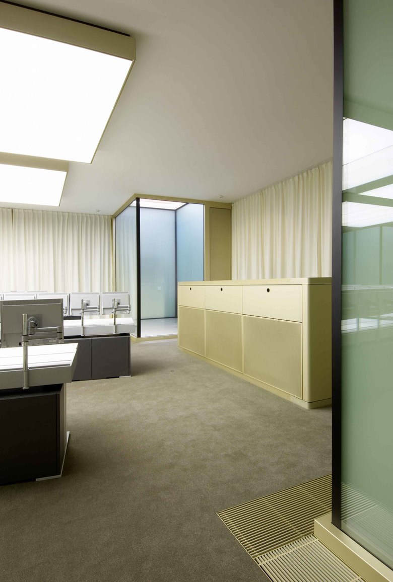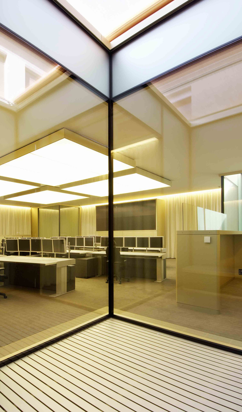 In den bereits 1973 erstellten Hofeinbau ist auf Zeit bis zur vollständigen Wiederherstellung des Innenhofs, die Führungsinfrastruktur der STAPO Zürich als autarker „war-room“ eingepasst.