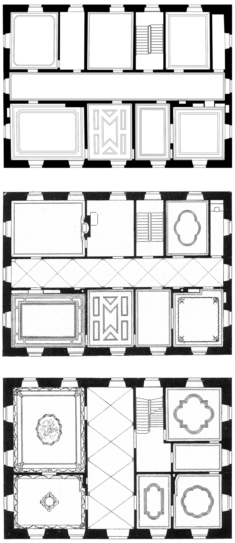 Im Inneren sind die wesentlichen noch vorhandenen Raumfassungen mehrheitlich geprägt vom deutschen Rokokostil und Frühklassizismus und sollen dem altzürcherischen Wohnhaustypus seiner Zeit ent- sprochen haben - Hell und freudig muss es aussehen. Fragmentarisch noch erkennbar ist, dass jeder Raum ein für sich abgeschlossenes Ganzes bildet. Geradlinige, schnörkellose und heiter gestrichene Umrahmungen fassen Flächen als Füllungen und gliedern die Raumwände zu kassettierten, teilweise raumhohen Täfelungen - Flaches, sauber umrissenes Relief. Kachelöfen und Einbaumöbel setzen darin Akzente. Zimmerböden sind mit dunklem, massivem Tafelparkett belegt und mit Friesen gefasst. Ornamentale, geometrisch vielfältige Stuckdekorationen schmü- cken die hell gehaltenen Decken. Mit dem Kreuz- gewölbe in der Halle, den dunkel lackierten Nussbaum- türen, den Grisaillen an Schrankeinbauten und den nicht mehr vorhandenen Gobelinbespannungen in den Eck- zimmern, zeichnet sich das erste Obergeschoss als ur- sprüngliche bel étage aus.