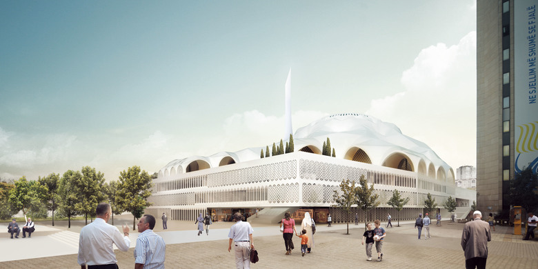 The new Central Mosque has been intended to be one of the most important landmark-buildings not only for its immediate neighborhood but more important for entire Prishtina and the Muslim community of Kosovo. With the demanded mixed-use space program the mosque will be both: a major religious center as well as an important cultural and commercial institution of, its neighborhood, the city and the region as a whole. Thus the new central mosque needs to be both contextual and iconic on all scales. It needs to appear as a forward-looking icon as it has to show its roots to a very specific local and cultural context.