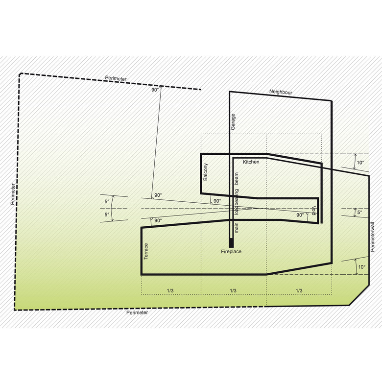 Für ein Grundstück im Osten von Dreieich-Götzenhain, einer Kleinstadt im Umland von Frankfurt am Main, war ein Einfamilienhaus zu entwerfen. Bis heute ist das Quartier durch den suburbanen Siedlungsbau für die zunehmend wohlhabende Gesellschaft des Wirtschaftswunders der 1960er Jahre geprägt. Die ursprünglich vergleichsweise einheitliche städtebauliche Struktur aus ein- bis zweigeschossigen Einfamilienhäusern hat sich seitdem jedoch grundlegend gewandelt. So kennzeichnet sich das Viertel heute durch eine spürbar höhere bauliche Verdichtung und einen breitgefächerten Stilmix, der die individuellen Vorlieben der heutigen Bewohner lesbar macht und den vormaligen stilistischen Konsens der Nachbarschaft längst abgelöst hat.