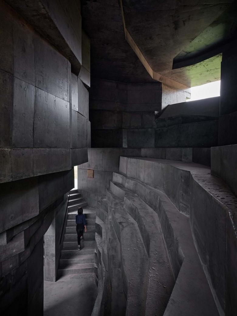Nestled in a mountainous valley two hours away by car from the center of Beijing, The Chapel of Sound is a monolithic open-air concert hall with views to the ruins of the Ming Dynasty-era Great Wall. Designed by Beijing-based architecture office, OPEN, to look as a mysterious boulder that had gently fallen into place, the building is built entirely from concrete that is enriched with an aggregate of local mineral-rich rocks, and encompasses a semi-outdoor amphitheater, outdoor stage, viewing platforms, and a green room. While designed to capture the unfamiliar and deeply touching experience of music performed in the cradle of nature, the architects also wanted people just to calm down and listen to the sound of nature, which they believe is profoundly inspiring and healing. When there is no performance, the concert hall is also a tranquil space for contemplation and community gatherings with stunning views of the sky and the surrounding landscape.