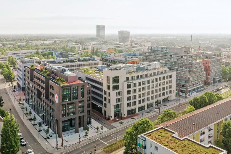 In addition to office space, the Macherei provides a vide range of typologies such as hotels, restaurants, fitness areas and a supermarket. It is a small, self-sufficient cosmos in its own right, but thanks to its good public transport connections and urban development, it is also an ideal base from which to travel quickly.