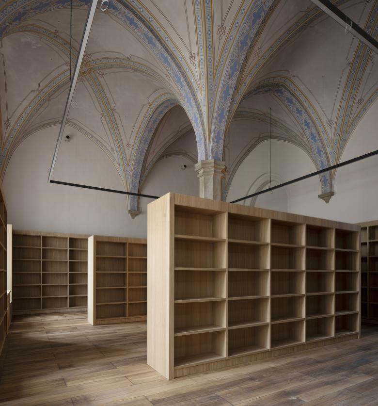 In dem Bibliotheksneubau werden ca. 120.000 Bände aus unterschiedlichen Zeitepochen aufbewahrt.