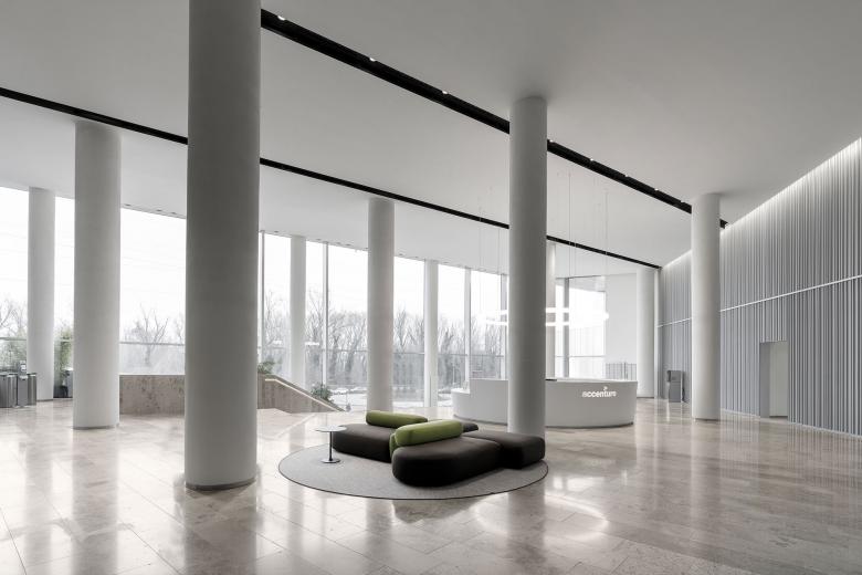 A blade of glass and steel, resembling a prow pointing north-west, acts as the fulcrum of the Accenture People Hub building’s architectural composition, one of Accenture's offices in Italy, a project by Park Associati for Milanofiori Sviluppo (Gruppo Brioschi Sviluppo Immobiliare). Comprising fifteen floors above ground and covering a surface of approximately 31,500 square metres, this building is one of the most notable achievements of the Milanofiori Nord sector in Assago.