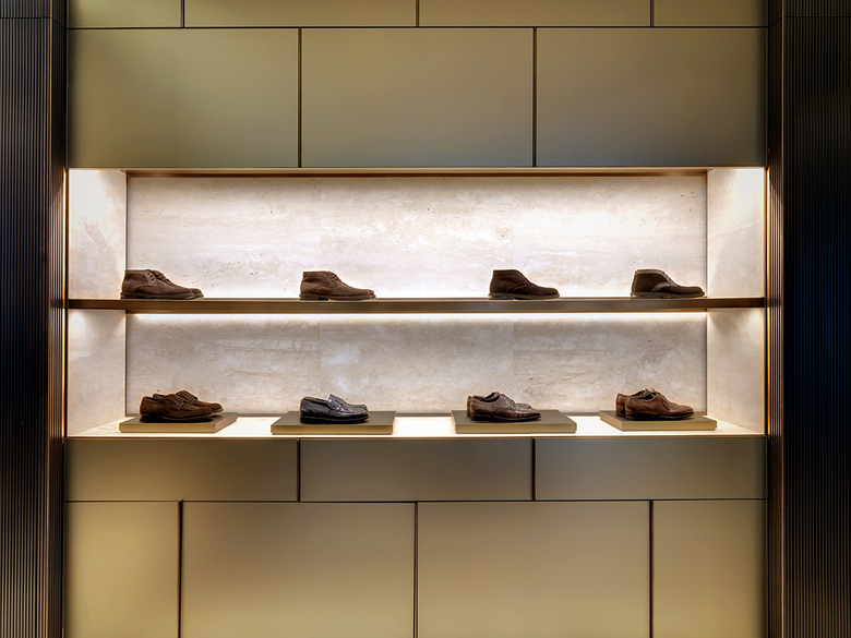 The distribution of the various product areas expressed in this space the classical division , designed by Park Associati to maximize the brand's products , and correspond to the expectations of the customer to welcome the customer in an elegant and linear space, in which the materials enhance their classic taste of a brand that was born in the city of Rome , the heart of European classicism .