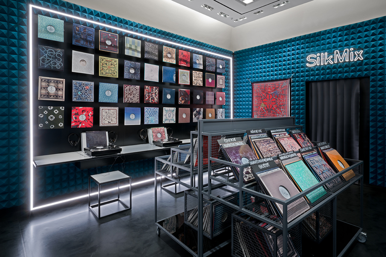 In its historic boutique of via Condotti in Rome, Hermès opened Silk Mix, a temporary installation inspired by a record store.
