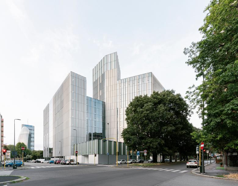 Pharo, a new office building designed by Park Associati, was built on a lot that, given its crucial position along the city centre access roads and its proximity to the Citylife and Portello neighbourhoods, has great strategic potential for urban development. Thanks to these elements, this is a place of great interest for the evolution of Milan's urban morphology.