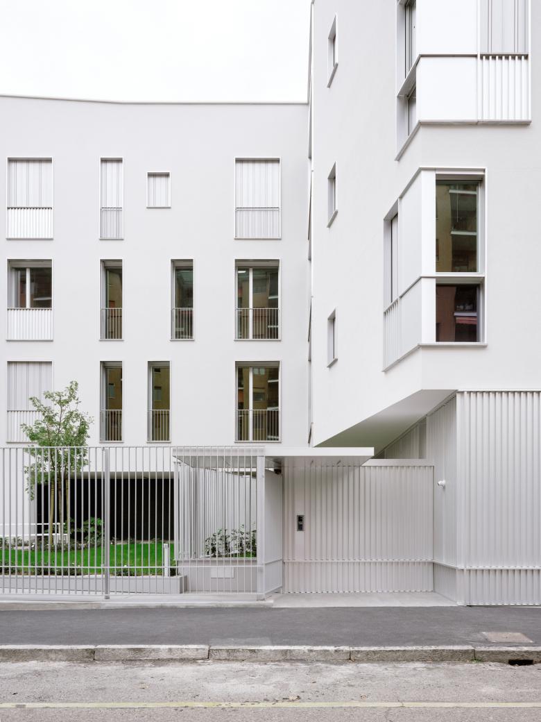 Featuring strong distinctive elements, such as a play of neat white-plastered volumes and architectural details of loggias and windows covered in sheet metal, the project reinterprets the modernism of Milanese residential architecture into an elegant and understated building. The courtyard, a reference to the urban courtyard that in historic Milanese residences is traditionally internal and private, here opens up to public life and acts as a filter between individual home living and communal urban coexistence.