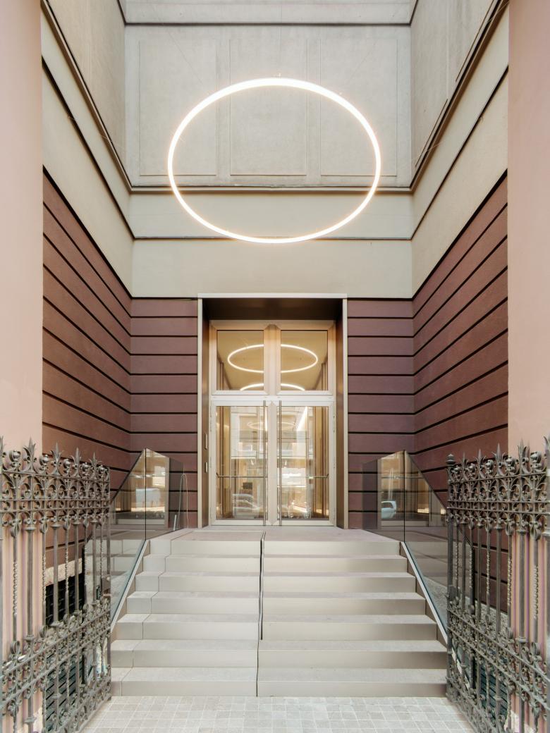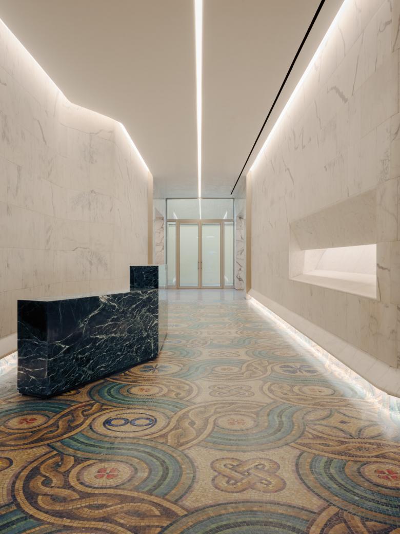 The entrance to the tower has also been transformed, featuring a semi-open vestibule on Via Turati adjacent to the museum entrance. The lobby restoration, respecting the tower’s original design, accentuates the details that make it architecturally unique.