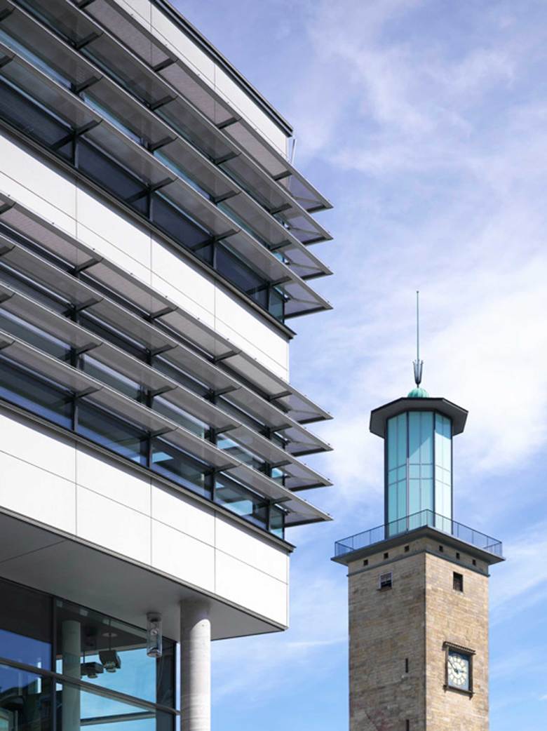 Die aussergewöhnliche‚ boomerang‘-Form des Gebäudes hat auf verschiedene Weise eine Signalwirkung. Zum einen bietet die Öffnung des Gebäudes zum Friedrich-Ebert-Platz den Passanten ein grosses ‚Schaufenster‘ und den Besuchern und Unternehmen im Gebäude ein ‚Fenster zur Stadt‘. Desweiteren rückt das Gebäude durch seine weiche Spitze ins Blickfeld und wird zum zentralen Punkt in der Stadt. Zum Friedrich-Ebert-Platz ist die Fassade über alle Geschosse durchgehend verglast.