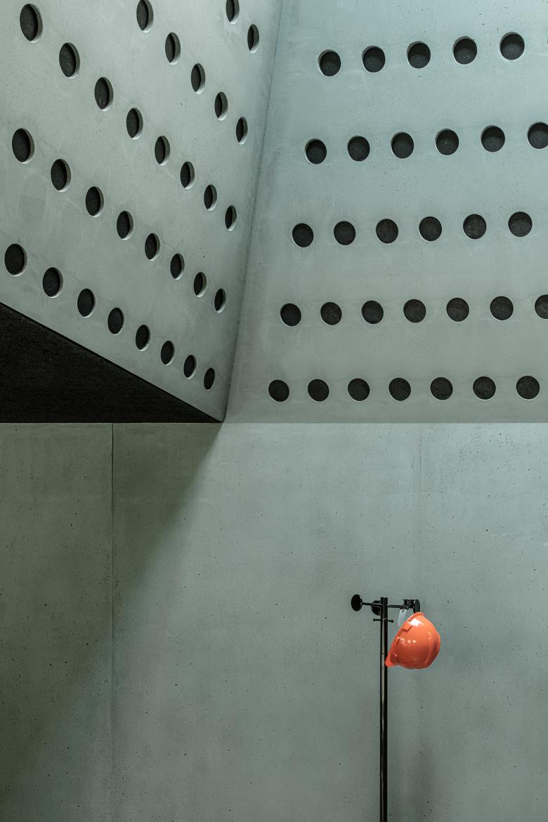 Die Zentrale des Betonwerks ist ein identitätsstiftendes Headquarter, das die Transformation 2002-2022 nach dem Motto „from grey to green“ interpretiert und unter Ausschöpfung verschiedener betontechnologischer Möglichkeiten vollzieht. Die bestehende graue Betonhülle wird aufgrund ihrer etablierten „Markenbotschaft“ unverändert beibehalten. Charakteristisch für den Innenausbau ist hingegen die überwiegende Verwendung von grün pigmentiertem Leichtbeton mit verschiedenen Oberflächenstrukturen, Schwarzstahl und Glas.