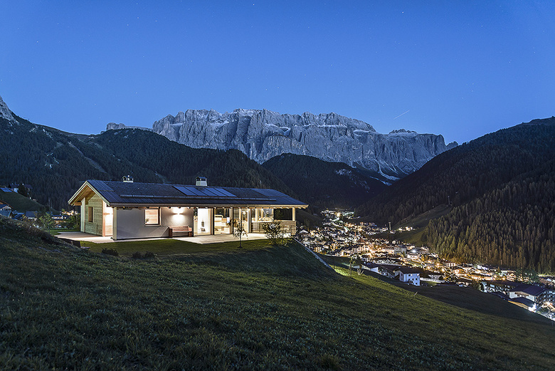 The single family house, projected by Rudolf Perathoner Architects, is situated on a steep hill just outside the mountain village of Selva in Val Gardena in a unique position with astonishing views of the beautiful Dolomites.