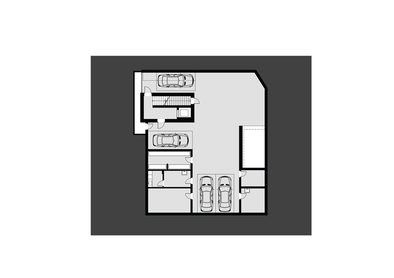 The steepness of the terrain suggested extending the building over four floors with the first two levels partly below grade. The house presents a smaller front on the north side, while the main front faces the south side featuring large windows overlooking the beautiful mountains. The building offers three separate living units and a large garage with a car lift that provides access to an underground parking space. The preferred space of the house is the attic with floor-to-ceiling windows for a striking view of the landscape.