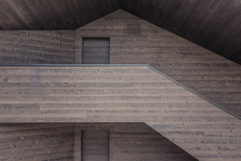 The entire building has a modernist architecture with clean lines, but also carries echoes of architectural traditions like the use of local materials such as stone and wood. The main goal of the project was to merge the building with the surrounding natural alpine landscape.