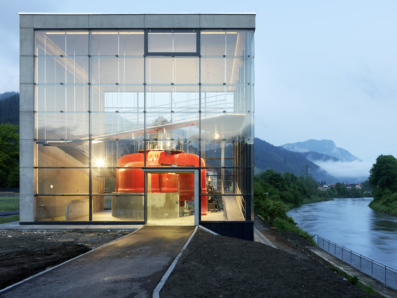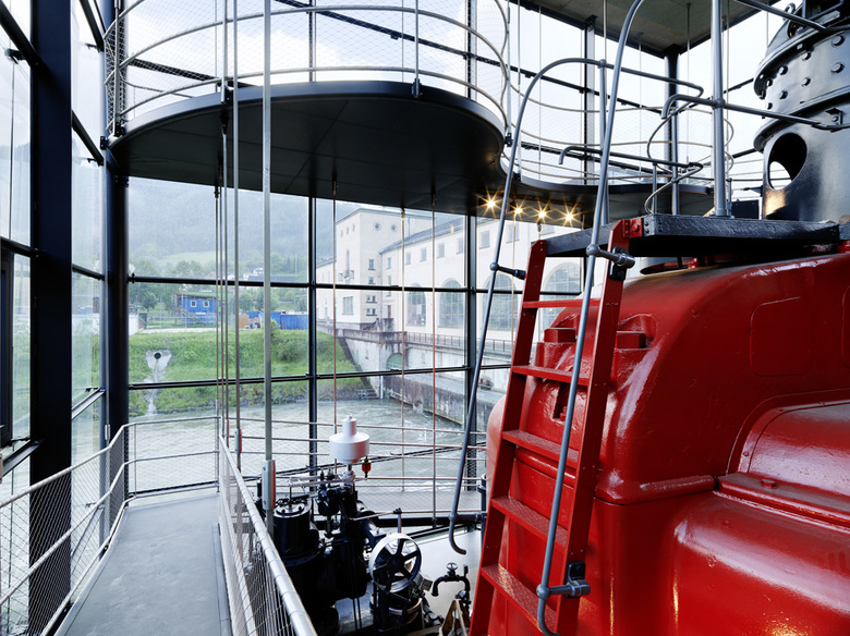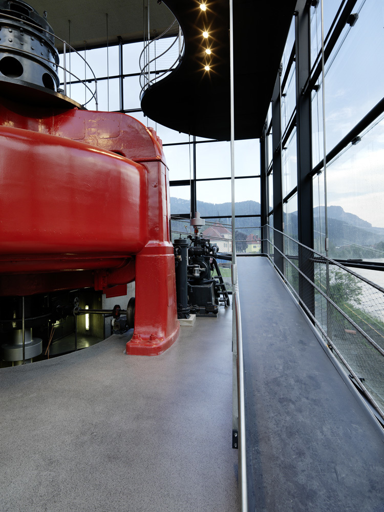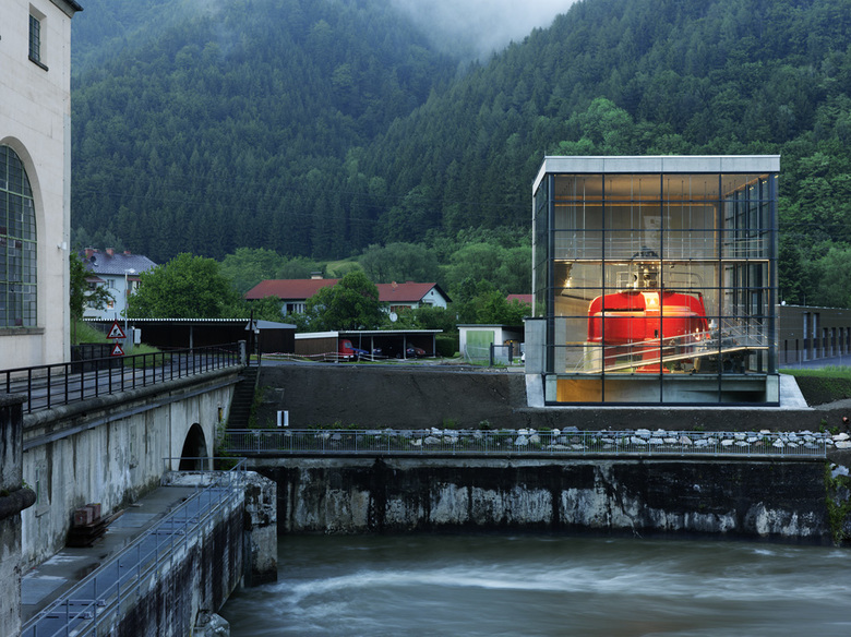 Der Ausstellungspavillon ist in die Gesamtanlage des Kraftwerkes Pernegg eingebettet. Entlang der Hauptfassade des Krafthauses gelangt man über eine Brücke zum Ausstellungsgebäude, in dem die rote Kaplanturbine präsentiert wird.