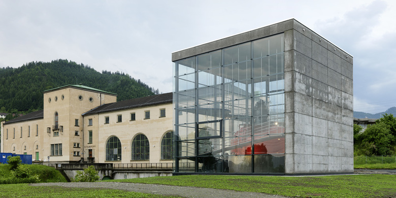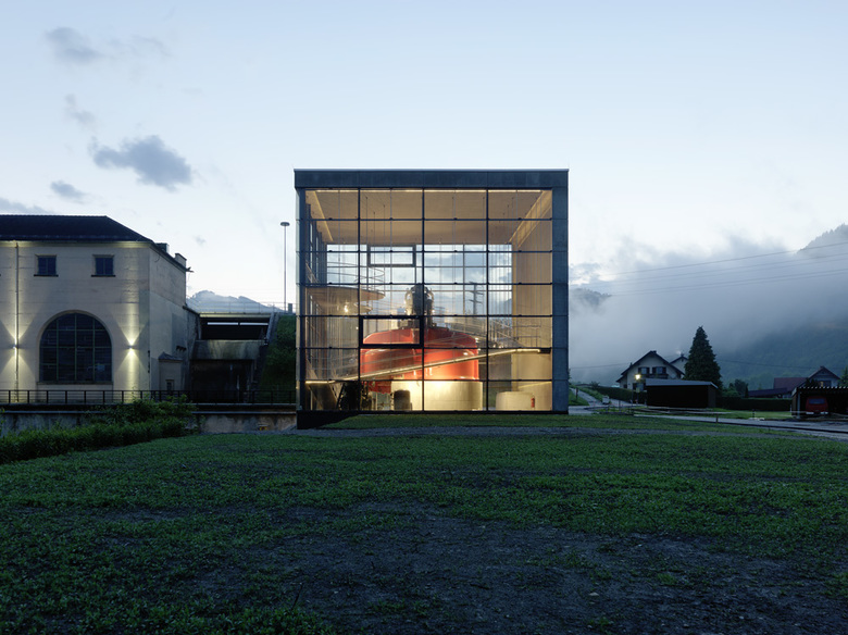 Der neue Bau hat die Form eines gleichseitiges Würfels. Als nach drei Seiten transparenter, schlichter Baukörper bildet es einen einfachen, klaren und wohl proportionierten Raum zur Präsentation der Turbine.