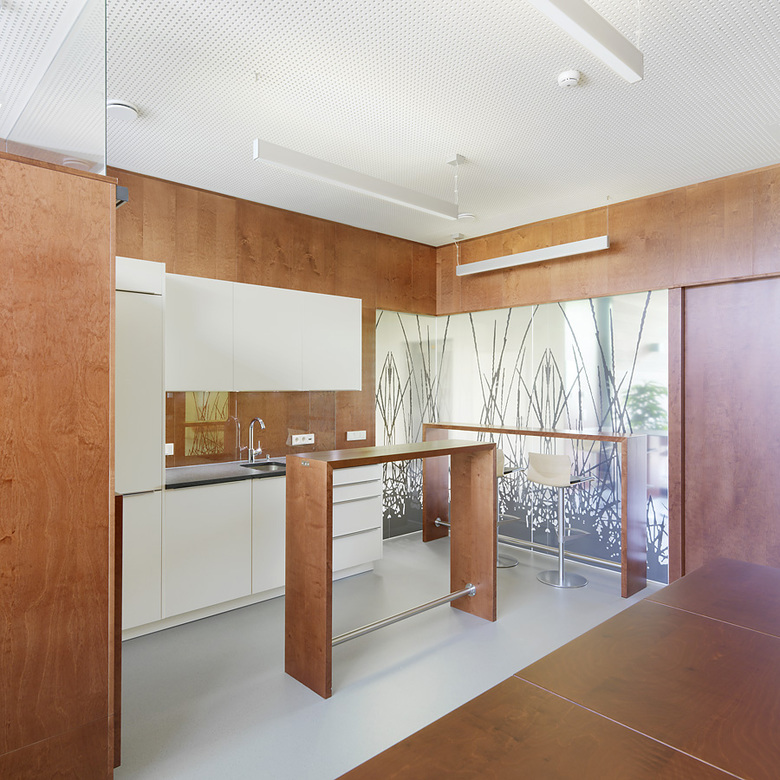 Um einen funktional optimierten und in seinen Proportionen stimmigen, eleganten Baukörper zu bekommen, wurde das bestehende Bürogebäude auf zwei Geschoßen linear nach Süden verlängert.
