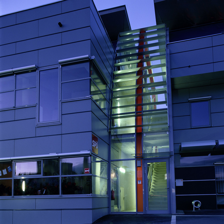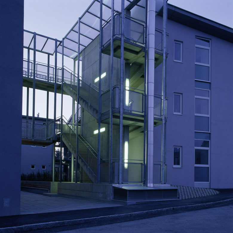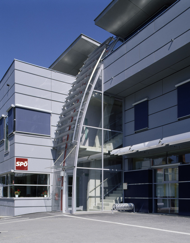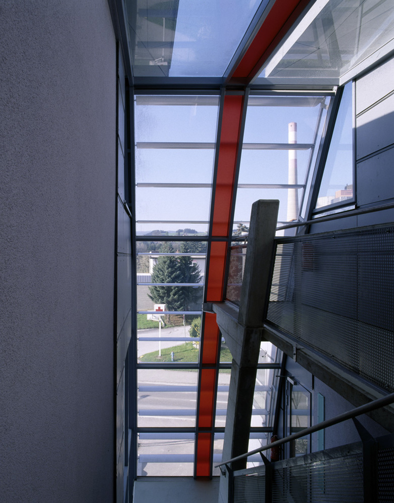 Die Proportionen der Baukörper orientieren sich am kleinstädtischen Maßstab der umgebenden Bauten in Voitsberg. Die unterschiedlichen Funktionen werden nach außen hin durch verschieden Oberflächen, Strukturen und Farben transportiert.