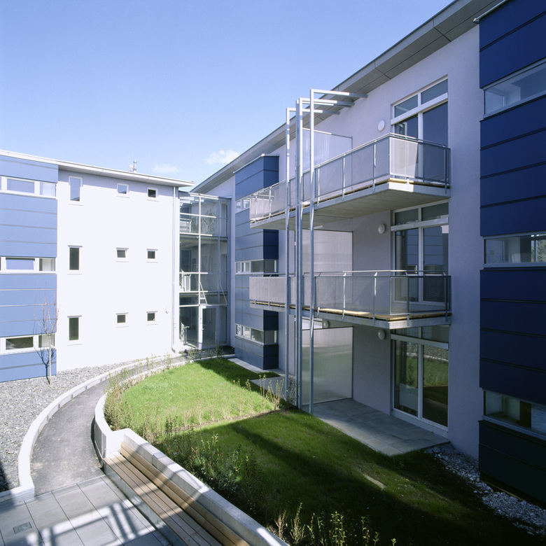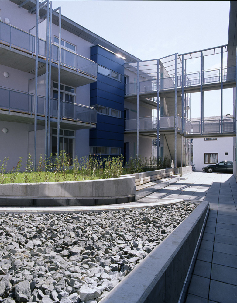 Dies bedeutete eine bestmögliche Nutzung des Grundstücks durch optimale Baukörperstellung und Erschließung, eine bauliche Trennung zwischen öffentlichen und privaten Bereichen sowie das Schaffen einer einheitlichen architektonischen Gesamtanlage.