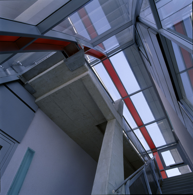 Aufgabe war es, fünf autark benutzbare und eigenständige Funktionsbereiche auf einem topographisch und verkehrstechnisch anspruchvollen Grundstück unterzubringen.