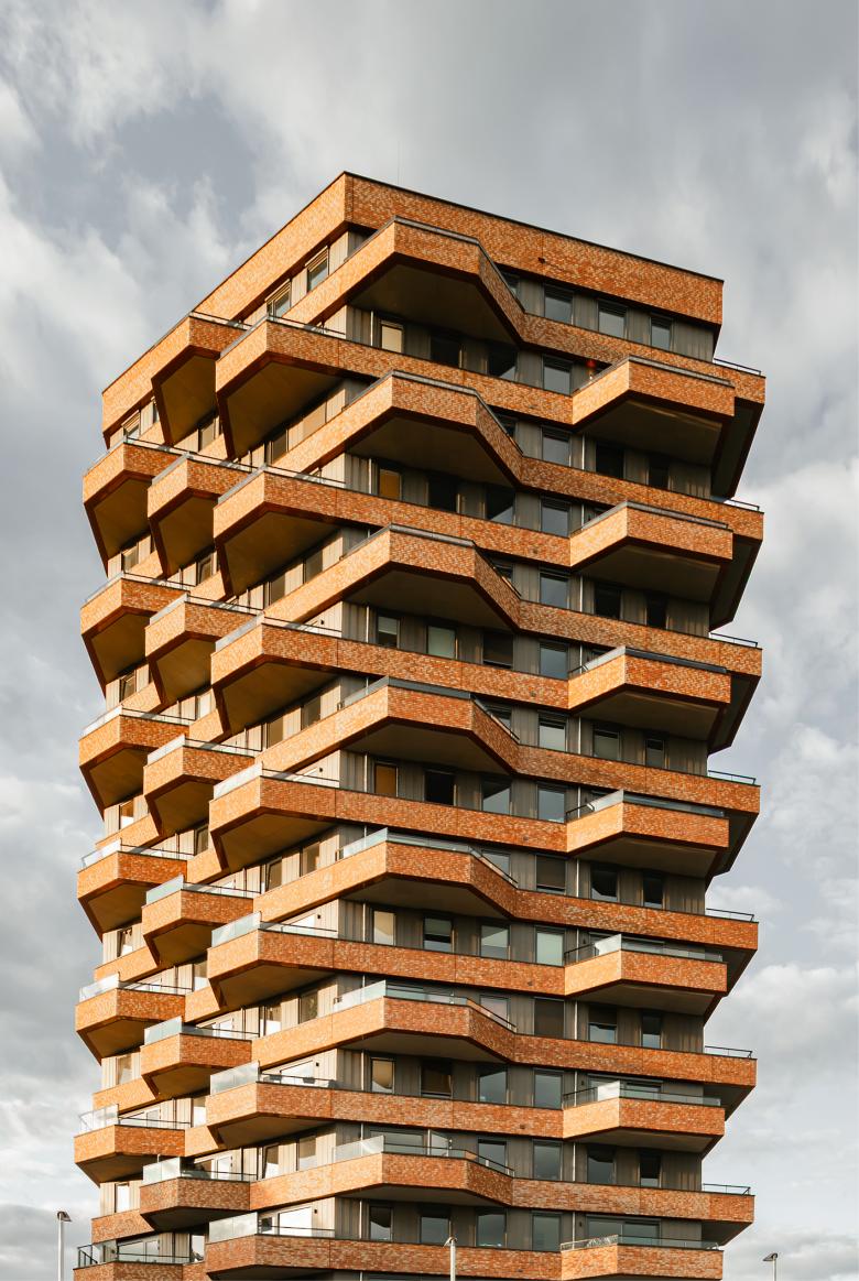 Defined by its hexagonal layout design, NELSON features sharply beveled façade planes that allow each balcony to offer optimal views of the river, the city, or the surrounding landscape. Its crisp vertical corner faces the Mandela Bridge – a vital urban link – while balconies ripple outward in a dynamic rhythm, giving the building a different appearance from every angle.