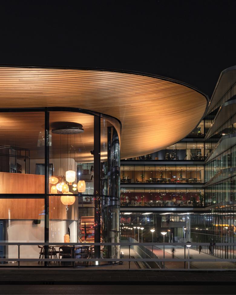 A bold architectural statement at the heart of the ING Campus and new Innovation District in Amsterdam’s Zuidoost area, Powerhouse Company’s curvilinear glass ING Pavilion helps define the neighborhood by bringing together ING employees, the local community and visitors for food and fun.