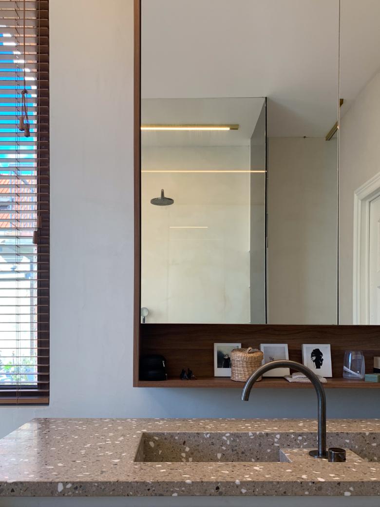 De eerste verdieping, zijnde de hoofdverdieping, is volledig gewijd aan de ouders. Slaapkamer met terras, ruime badkamer en bureau zijn nauwkeurig gedetailleerd en afgewerkt in marmer en hout. De kinderverdieping behoudt zijn bestaande indeling, maar wordt aan de achterzijde uitgebreid met een terras als uitkraging.