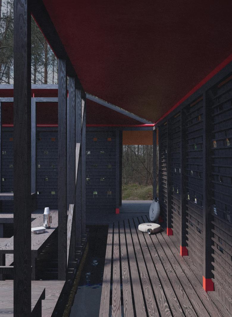 The focus of the design concept is the transformation of individual knowledge into collective knowledge, as the forest fires represent a challenge for society as a whole. Visibility and transformation of the buildings through use, time and volume are key aspects of the design and determine the appearance and functionality of the architecture. The hybridity in the designs and the constructive details themselves attempts to unite the two levels of poetry and reality of the forest habitat.