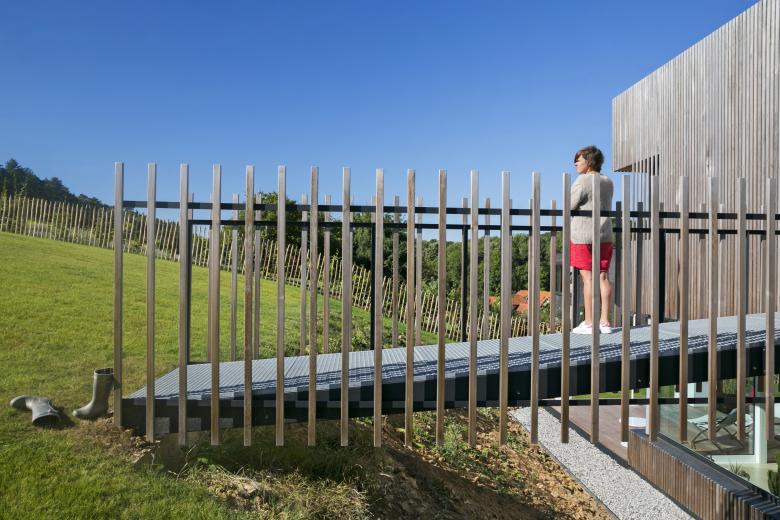 Le bâtiment s’inscrit parfaitement dans la pente naturelle du terrain.