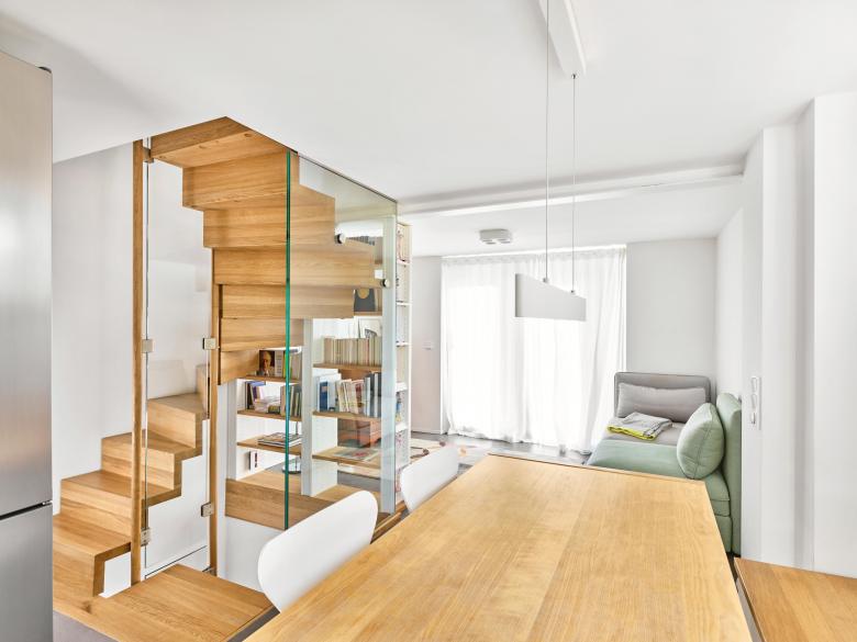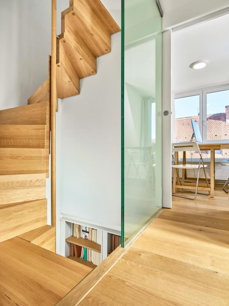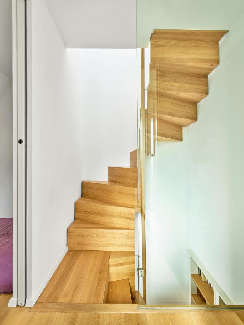 Four large dormer windows were installed, a gable wall opened with glass double doors to the garden, access created from a new turned wooden staircase, as well as a compact floor plan and installation solutions. Planning from the inside to the outside, and space reconfiguration creates two additional bedrooms and a shower room on the upper floors: living through internal growth.