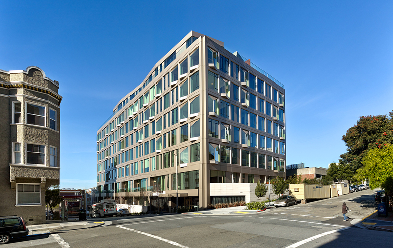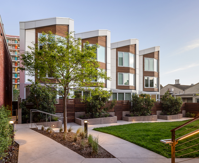 The Pacific involved the adaptive reuse of a 1967 dental teaching facility into a multifamily residential building, as well as the creation of ten new townhouses on an adjacent surface parking lot.