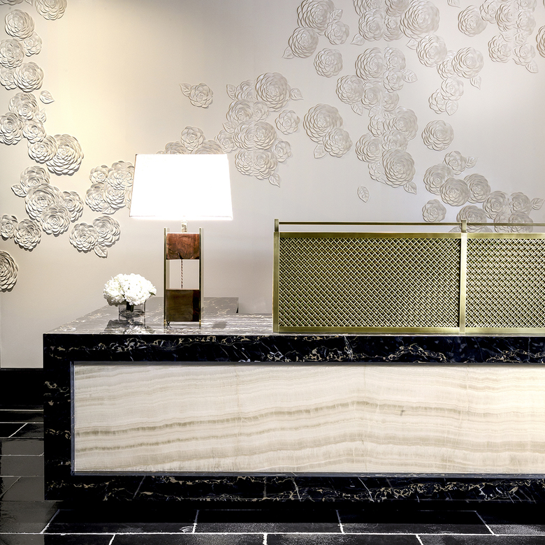 World-renowned artist Helen Amy Murray was engaged to create a stunning installation within the lobby, complemented by a palette of blacks, emeralds and golds, which echo the late evening colors of Northern California.