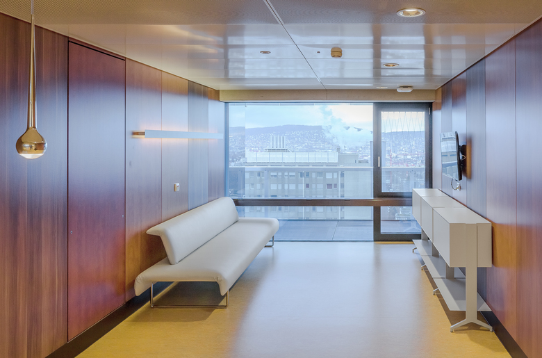 Innerhalb der Gesamterneuerung des Stadtspitals Triemli ist der Neubau des Bettenhauses ein Schlüsselprojekt und städtebaulich ein neues Markenzeichen. Der achtzehngeschossige, elegante Längsbau mit seiner gläsernen Fassade bietet Platz für über 500 Betten. Im Innern findet sich eine Infrastruktur, welche konsequent auf die Bedürfnisse der Patientinnen und Patienten und auch der Mitarbeitenden ausgerichtet ist.