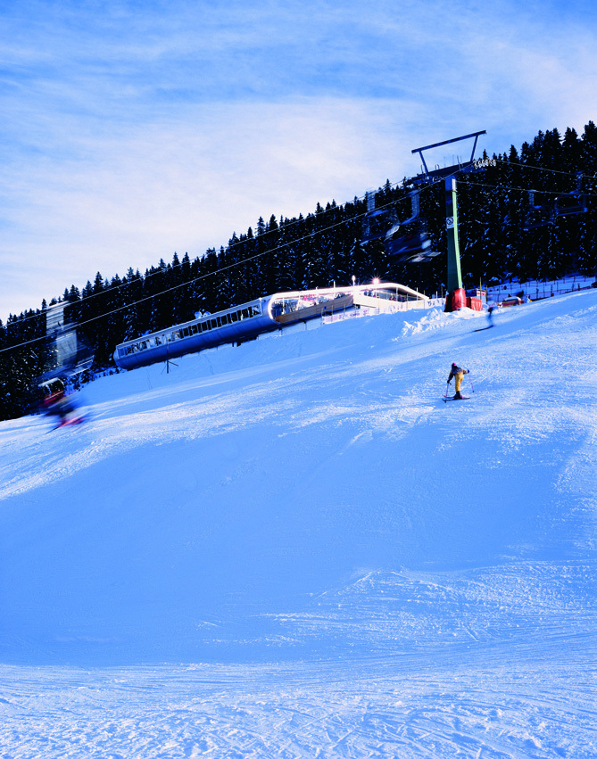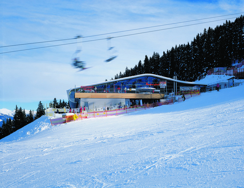 Dass es sich bei der in rund 1.700 Meter Seehöhe errichteten Bergstation der Mayrhofner Horbergbahn um das Recycling bzw. die Überformung einer ehemaligen Struktur aus den 1960er Jahren handelt, ist dem anmutig sachlichen, an den beiden Stirnseiten vollflächig verglasten Gebäude nicht anzumerken. Die Station, die als Zubringer zum Skigebiet Schwendau-Penken große Transportkapazitäten zu bewältigen hat, sollte anfänglich nur im Restaurantbereich (das ursprünglich im Unterbau der Lifthalle untergebracht war) ausgebaut werden, doch die Architekten haben aus dieser Anforderung eine umfassende räumliche Neuordnung entwickelt, die nicht nur die funktionalen Abläufe der Bergstation verbesserte, sondern die gesamte Anlage architektonisch auf eine höhere Qualitätsstufe hob.