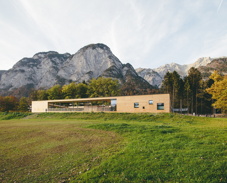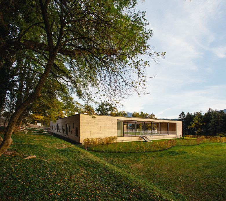 HALTUNG: Wir versuchen ebenso entspannt, leicht und selbstverständlich zu Bauen: Keine großen Erdbewegungen. Auf den bereits eingeebneten Bauplatz in der östlichen Hälfte des Fußballplatzes wird der ebenerdige eingeschossige Garten für Kinder gesetzt.