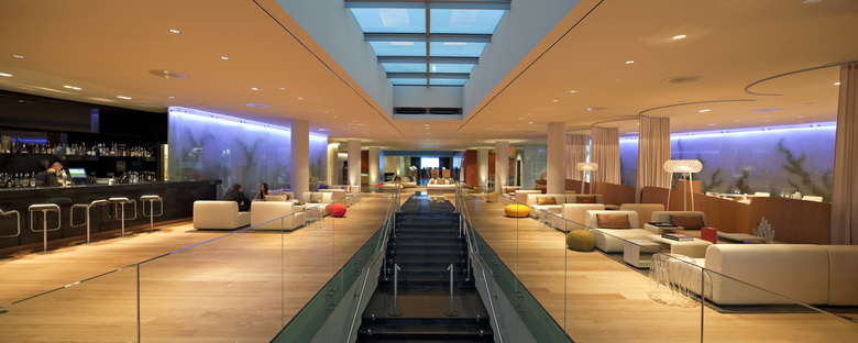 Este hotel de 5 estrellas está situado en el puerto de Barcelona, a orillas del mar. Tendrá 408 habitaciones, 67 suites, un bar panorámico situado en la azotea, piscinas interiores y exteriores y varios otros equipamientos agrupados debajo de una plataforma de terrazas. El edificio, engastado en el volumen del atrio, disfruta de grandes vistas sobre el mar y luz natural.