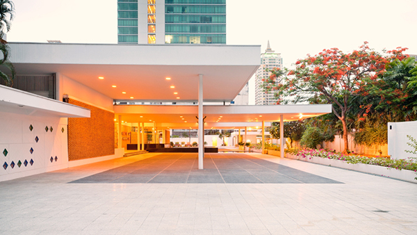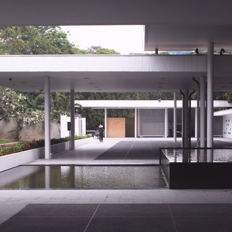 Inmitten Bangkoks wirkt der flache Gebäudekomplex aus den Fünfzigerjahren wie eine Insel. Einerseits strahlt er noch heute die Faszination der Modernen Architektur aus, andererseits sorgt die Gartenanlage mit den aufstrebenden Bäumen für Abwechslung im Hochhausquartier. Der Architekt Hans Hofmann, bekannt als Chefarchitekt der Schweizer Landesausstellung 1939 und als Professor der ETH, plante 1957 dieses ausserordentliche Gebäude für die Schweizer Botschaft in Bangkok. Leider verstarb er während der Planung und der Architekt Roland Vogel führte das Projekt zu Ende.