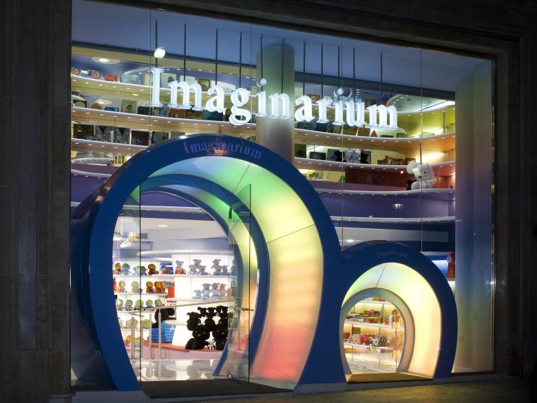 "Imaginarium" is a portmanteau of "imagination" and "rium" (place), and it is the name of a toy brand from Spain. The flagship store is located on Passeig de Gràcia, a prominent street in Barcelona, facing Antoni Gaudí's famous Casa Milà across the street.