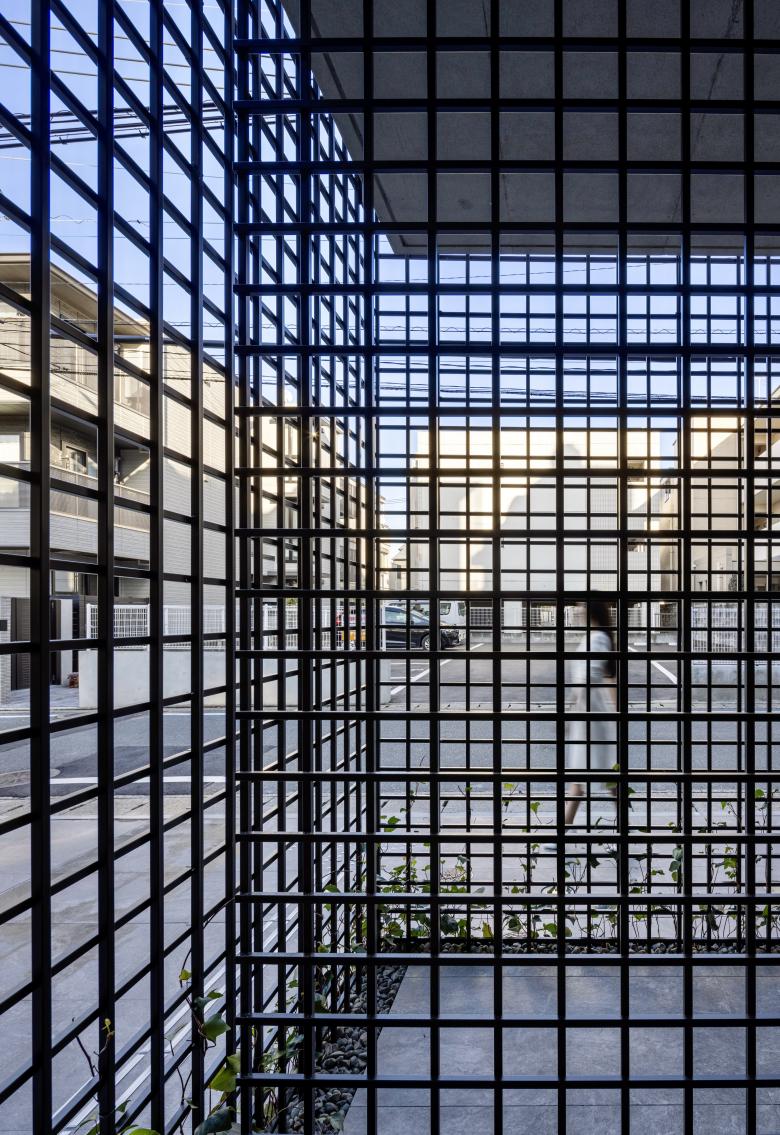 Since the second and third floors will be occupied by medical tenants, it is appropriate to enhance grounding rather than openness. Therefore, the staircase is placed on the facade side and covered with 8mm square aluminum. The 110 mm square is close in size to the exterior tiles of the adjacent buildings, creating a sense of continuity. In the future, it is expected that ivy will cover the staircase, and the mosquito net-like latticework will become a facade covered with greenery.