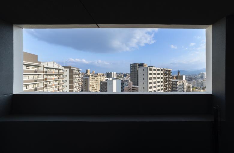 Anonymous Volume – The surface is painted white up to 150mm from the front, making it appear like a thin plate, with the rest painted black. Essential but unsightly elements of the residential complex, such as air conditioning units and downspouts, are hidden behind this plate. The plate is divided into square and rectangular pieces with 20mm wide black joints, similar to the "picture windows." Although actually finished with spray-applied tiles, it looks like solid aluminum panels. The unique arrangement of the joints makes it difficult to discern the building type, creating an enigmatic facade during the day and highlighting the white plate's cross-section with light leaking from the units at night.