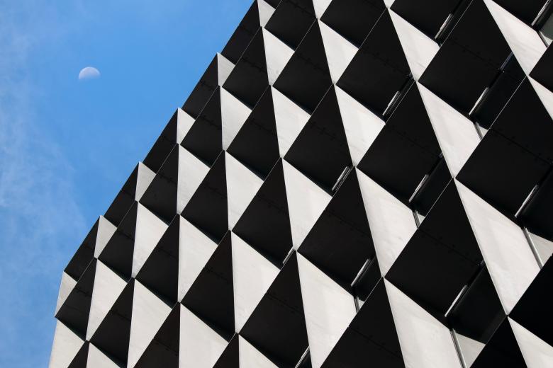 The façade presents a dual character between day and night. During daylight, the razor-thin edges of the steel plates cast sharp, elegant shadows, giving the building a refined presence. At night, LED uplights embedded at the base of each cell illuminate the louvers in a checkerboard pattern. As the thin plate edges deflect direct light, the steel’s material presence recedes, leaving only a floating matrix of light—a visual phenomenon that contrasts the hardness of steel with the weightlessness of illumination. This shift in perception between day and night transforms the urban experience, inverting how the building is read across time and light.