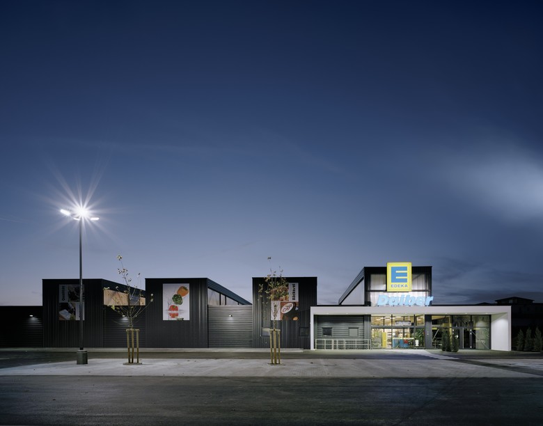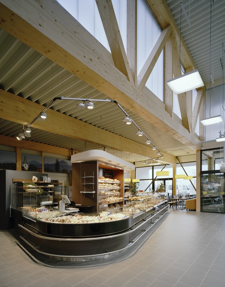 Der Betreiber und Bauherr unterstützte nicht nur das bauliche Konzept nach Kräften sondern brachte auch außergewöhnliche marktkonzeptionelle Dinge wie Getränkekühlraum und Bäckerei-Drive-In mit ein. Das Cafe öffnet sich mit seiner Terrasse zu einem schönen Ausblick auf die Schwäbische Alb und Obstbaumwiesen und schafft es so, sich vom normalen Image eines Supermarktcafes abzuheben was sich auch daran zeigt, dass das Cafe (das auch Mittagstisch bietet) sehr gut angenommen wird.