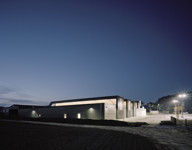 Um Tageslicht mittels senkrechten Öffnungen in das Gebäude zu bringen wechseln sich hohe und niedrige Bereiche ab. Auf ein Sheddach wurde verzichtet, da hier eine wesentlich größere Störanfälligkeit besteht, sollten die Kehlen mit Schnee bedeckt sein oder zufrieren. Gestalterisch entwickeln sich die Oberlichter aus dem horizontal strukturierten Baukörper und umgreifen ihn mit einer senkrechten Struktur. Der Eingang wird durch ein horizontal liegendes U markiert. Ein höheres Oberlicht unterstreicht die Eingangssituation zusätzlich.