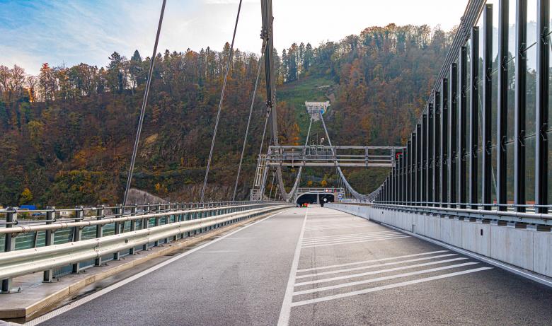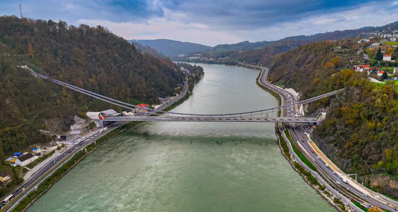 Die Donautalbrücke in Linz ist Teil des Großprojekts der österreichischen Autobahn A 26, der vierspurigen Westumfahrung der Stadt Linz, und quert eine der am meisten befahrenen Wasserstraßen Europas sowie Gleisanlagen der ÖBB und zwei Bundesstraßen. Die Felssteilhänge des Donautals erlauben eine direkte Verankerung der Tragseile im Fels und damit den Verzicht auf Pylone. Die vierspurige Autobahnbrücke konnte so als reine Hängebrücke ausgeführt werden. Sie schließt aufgrund der topografischen Verhältnisse im Norden und Süden über Tunnel an das bestehende Verkehrsnetz an.