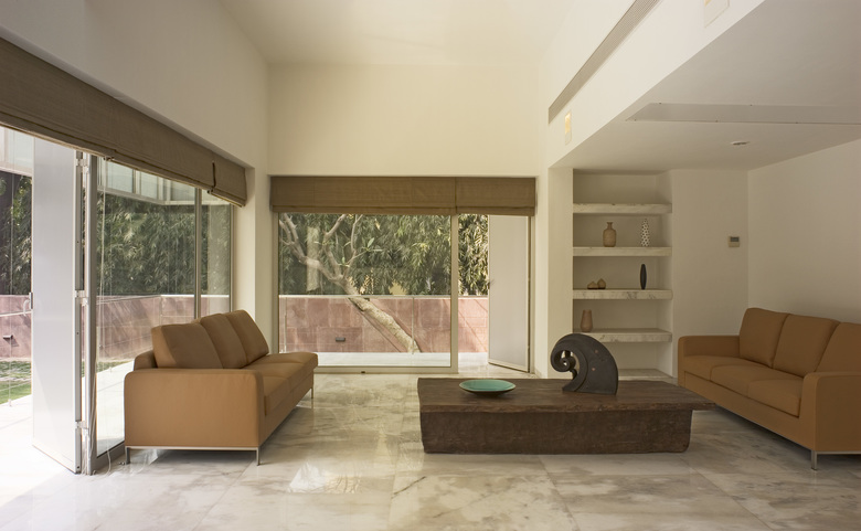A central courtyard brings light and ventilation to all bathrooms that are kept away of the facades. The focus on a good coordination between structure and services resulted in services as technical rings without disturbing the main dedicated spaces and destroying the facades aesthetic. All HVAC systems are kept on the upper roof and travel through indoor shafts. A trench filled with white pebbles on the boundary wall achieves water harvesting.