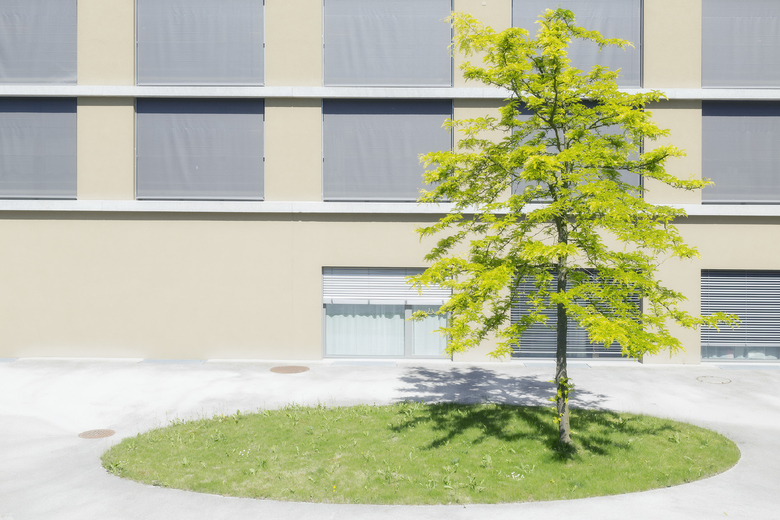 Blumenwiesen bilden einen heiteren Rahmen für das Alters- und Pflegeheim Therwil. Der Eingang zum Heim ist mit Pflanzenschiffen und einem langgestreckten Wasserbecken inszeniert, die die Fläche gleichzeitig infrastrukturell ordnen. Beim Entwerfen des Dementengarten galt es, besonders sensibel auf die Bedürfnisse der Bewohner einzugehen. Bewegen, Fühlen, Riechen, Tasten – einfach ein Stück Natur erleben können: Kräuterarrangements und Beerensträucher wecken die Neugierde. In erholsamer Atmosphäre können sich die Bewohner unter Schatten spendenden Sonnenschirmen ins Aussencafé setzen und den Blick über die Bauminseln im Südhof schweifen lassen. Zu einem kleinen Spaziergang laden die locker über das Gelände führenden Wege ein.