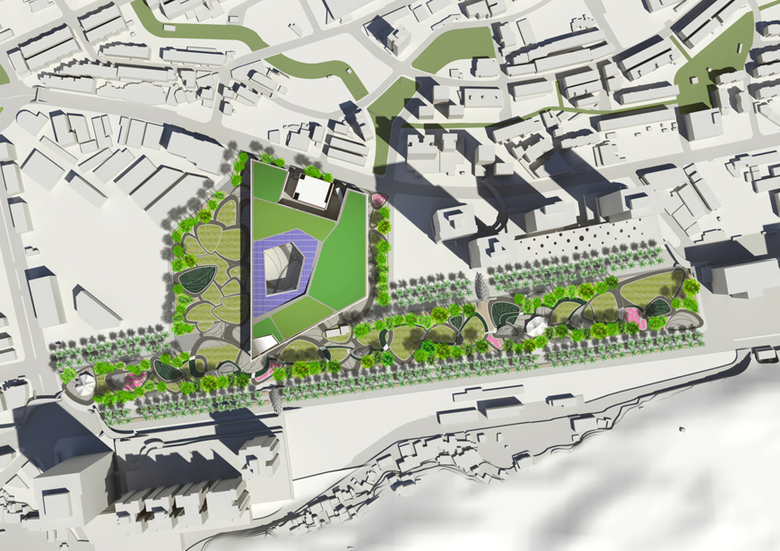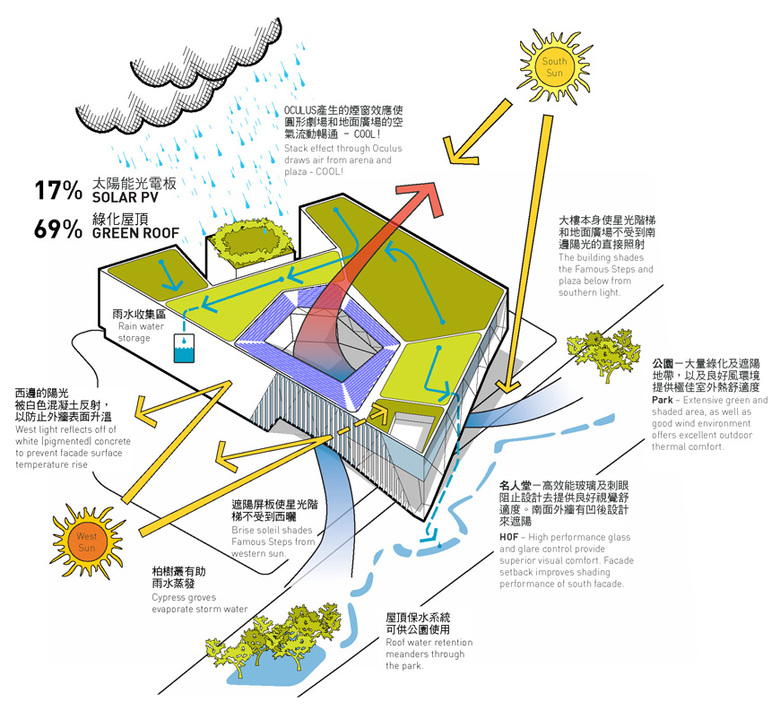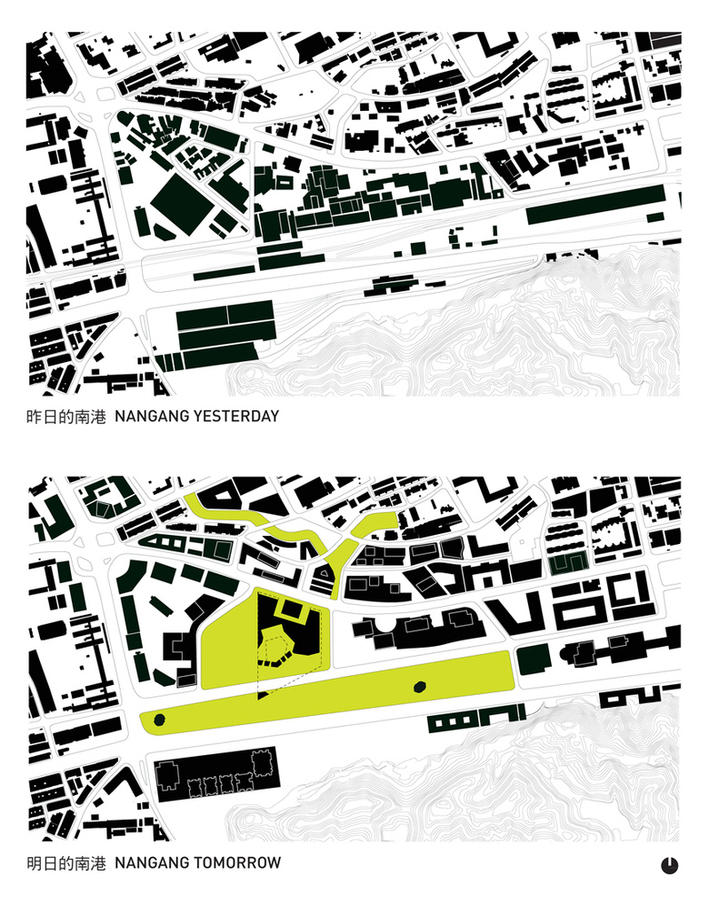 The building's compact design preserves the majority of the site for use as a vibrant urban park, serving the many outdoor music festivals of Taipei while adding important green infrastructure to this rapidly-developing neighborhood of Nangang.